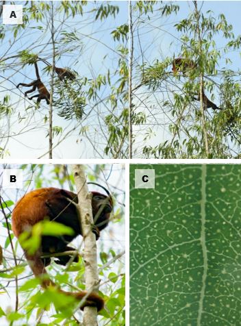 Se ha reportado que algunos sistemas productivos simples y complejos pueden ser usados como hábitat temporal o permanente por parte de algunos primates. En el sur de México y Brasil se reportó que plantaciones forestales de Eucalyptus sp pueden mantener poblaciones de Alouatta spp. Sin embargo, hay aspectos sobre el uso de áreas productivas que no han sido descritos. Por lo tanto, es importante explorar cómo los primates utilizan estos espacios, para generar información útil en la formulación de planes de manejo y conservación de la especie. Aquí, reportamos la observación de un grupo de Alouatta seniculus en actividades de descanso y desplazamiento en plantaciones forestales de Eucalyptus urograndis en el departamento de Antioquia, Colombia, a partir de observaciones ocasionales.