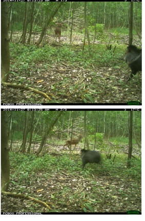 Las especies simpátricas al tener requerimientos similares tienden a competir por los recursos, sobre todo en sitios donde estos son limitados. A través de un monitoreo con cámaras trampa en cuerpos de agua en la Región de Calakmul, se registraron dos eventos de competencia por interferencia entre el pecari de collar (Pecari tajacu) y el venado cola blanca (Odocoileus virginianus), confirmando este comportamiento antagonista como una estrategia para acceder a un recurso compartido y limitante en esta zona.