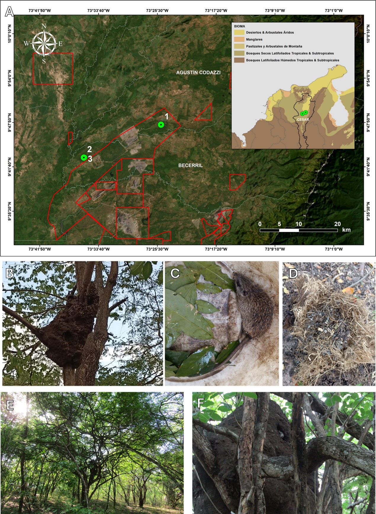 Racero-Casarrubia J, Calvano-Zúñiga A, Tortello-Ditta M, Téllez-Wenster L, Viloria-Lagares T, Cogollo KR, Pacheco JJC. 2024. Mamíferos en áreas de monitoreo y compensación asociadas a complejos mineros al nororiente de Colombia. Biota Colombiana, 25, e1133. https://doi.org/10.21068/2539200X.1133